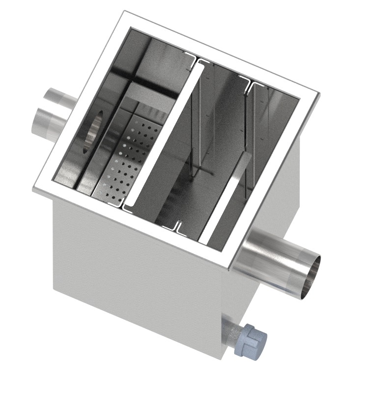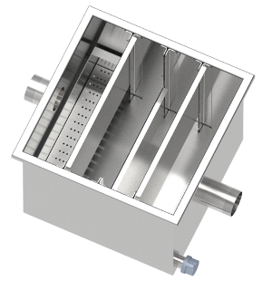 A grease trap commonly made of stainless steel, is a plumbing device used in commercial kitchens and restaurants to intercept and trap fats, oils, grease, and solids before they enter the wastewater disposal system.