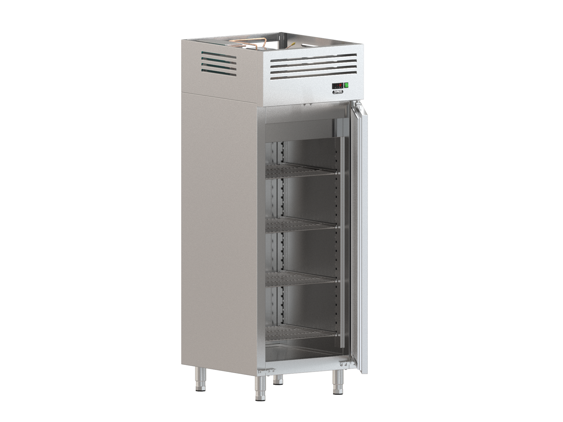 An upright swing 1-door refrigerator in stainless steel is a cornerstone of commercial kitchen operations, designed to provide reliable and efficient refrigeration for a variety of perishable goods. The high-quality stainless steel construction ensures longevity and resistance to corrosion, making it ideal for the rigorous demands of a busy kitchen environment. The sleek, polished finish not only enhances the professional aesthetic of the kitchen but also simplifies cleaning and maintenance, promoting hygiene and food safety.